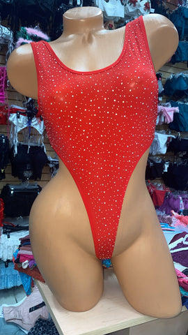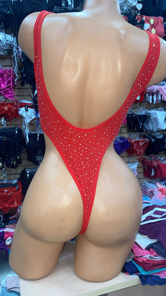 Rhinestone high cut bodysuit