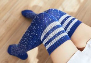 Knee high royal blue with white stripes