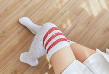 Knee high white with red stripes