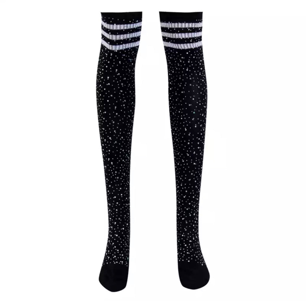 Rhinestone thick knee high socks
