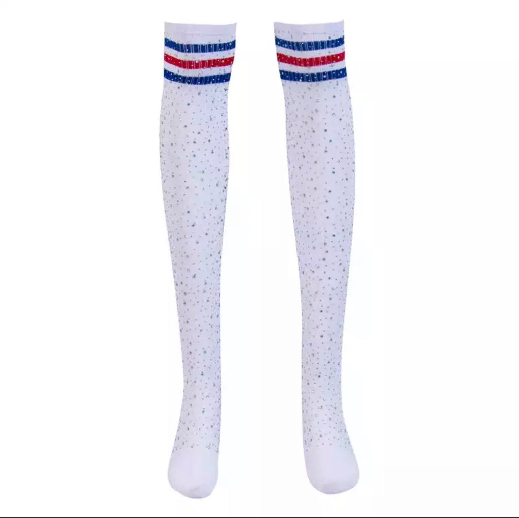 Knee high White with red and blue stripes / One size fits most - $15.00 USD