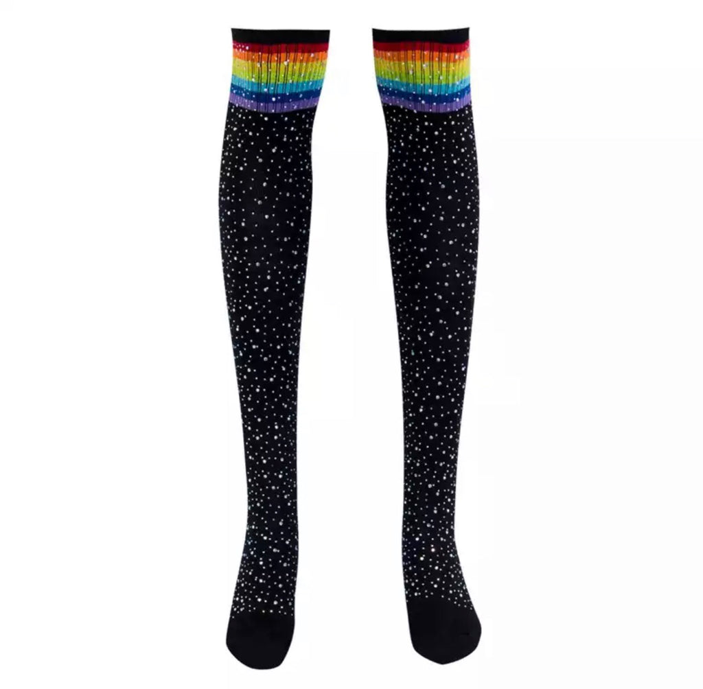 Knee high Black with rainbow stripes