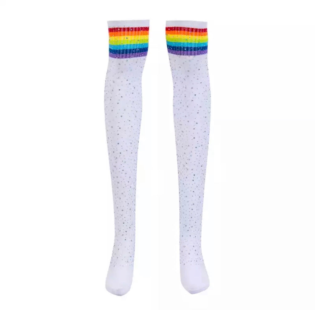 Knee high White with rainbow stripes / One size fits most - $15.00 USD