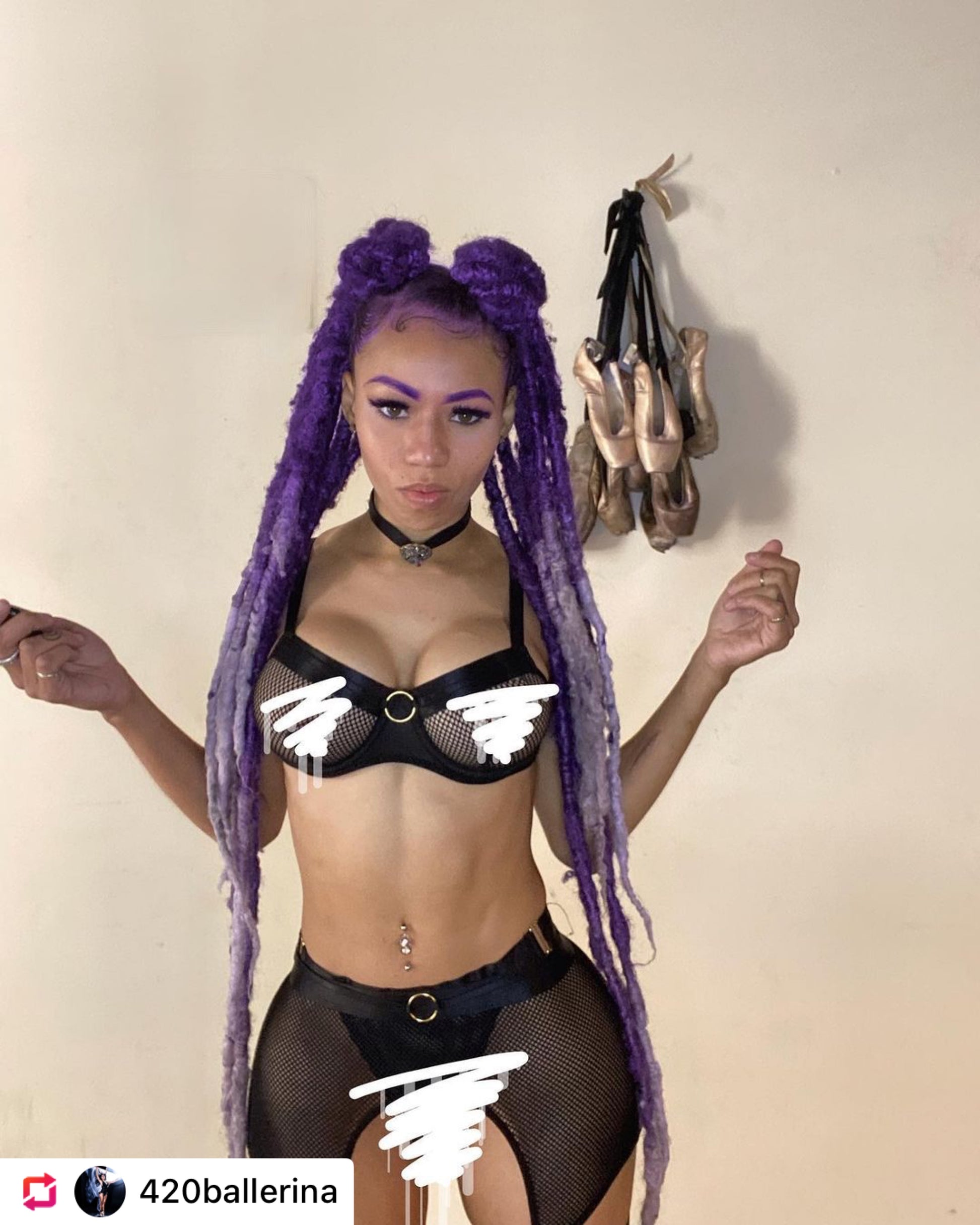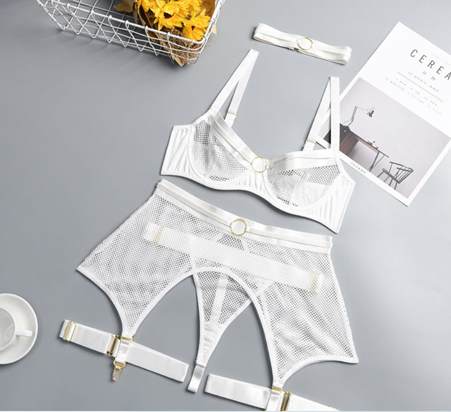 Fishnet harness with leg garters attached