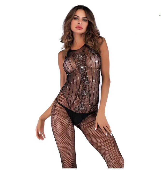 Fishnet Catsuit with rhinestones
