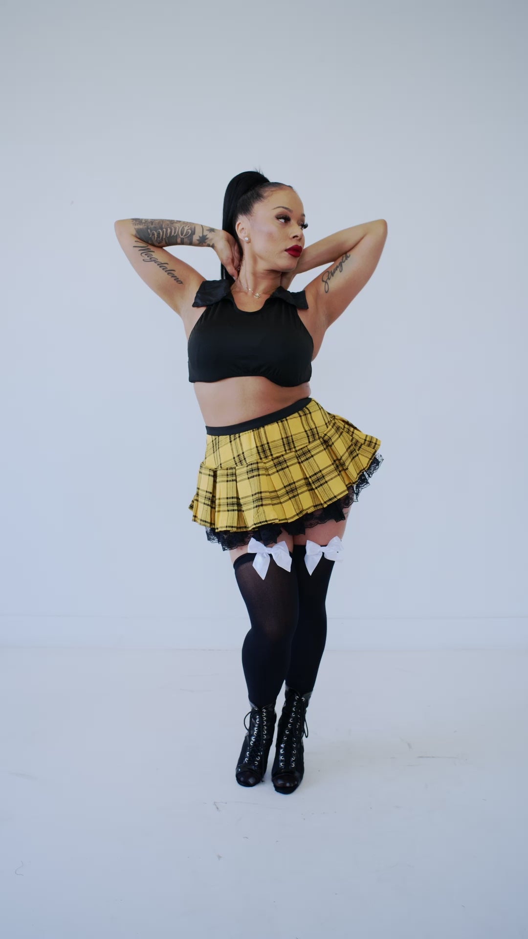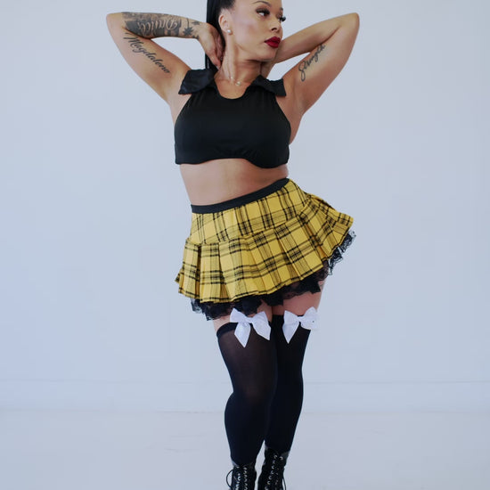 This yellow plaid skirt is the skirt you want to have to make any outfit come to life. It has a lace tutu on the bottom to make the skirt look puffier and sexier. Perfect to wear out for a morning brunch, to a cute picnic, or a sexy night in with your partner.